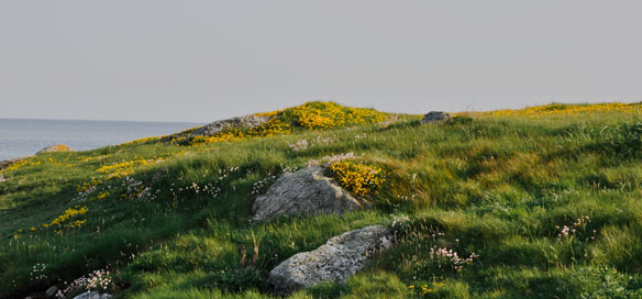 Windsor and cadmium lemon, bismuth, chrome and cadmium yellow, Naples and Indian deep and light yellow, jaune brilliant and yellow ochre have been splashed and dripped across Ardivachar headland as the sun has irradiated the islands for the past month. The machair is in its yellow period and the early summer flowers are glowing and